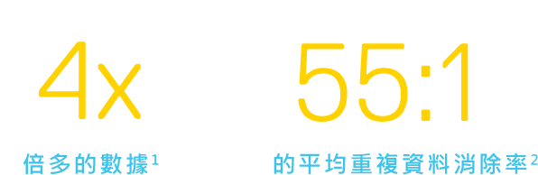 3 根據 Rubrik 和 Cohesity 公開提供的競爭性定價資訊而進行的 Dell EMC 內部分析,2018 年 5 月。基於邏輯 GB 單位成本。實際成本將有所不同。
