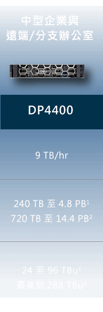 DP4400基於屢獲殊榮的Dell PowerEdge伺服器。 它支援快閃記憶體,其軟體定義架構專為高性能而設計。 DP4400具有7倍的備份流,增強的應用程式直接備份和2倍更快的備份視窗,可提供高備份和恢復性能,以滿足最嚴格的SLA和RPO。