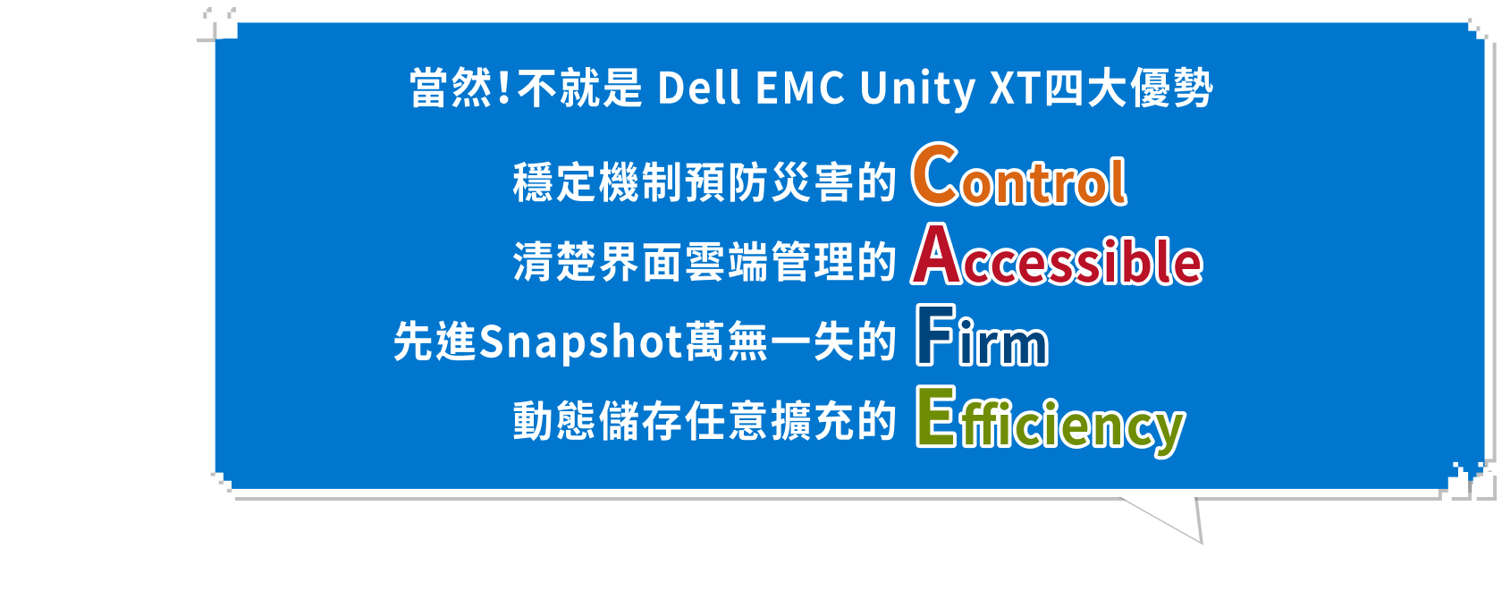 Active-Active 雙控制器除分攤工作負擔外,資料也能即時同步,當單一控制器發生故障時,其他控制器就能即時接手運作。另外 Dell EMC 儲存設備擁有高 IOPS、低延遲等特性,無需擔心發生商業流程被迫暫停或中斷的狀況