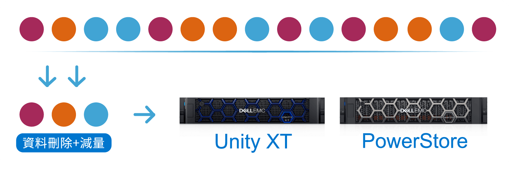 遇到 I/O 需求突發峰值時,Dell EMC 的中階儲存設備會做出智能預測,提供多達 20% 的額外 IOPS,讓企業安心使用,無須擔心效能問題,搭配重複資料刪除和資料壓縮等資料減量技術,更貼合工作負載需求。